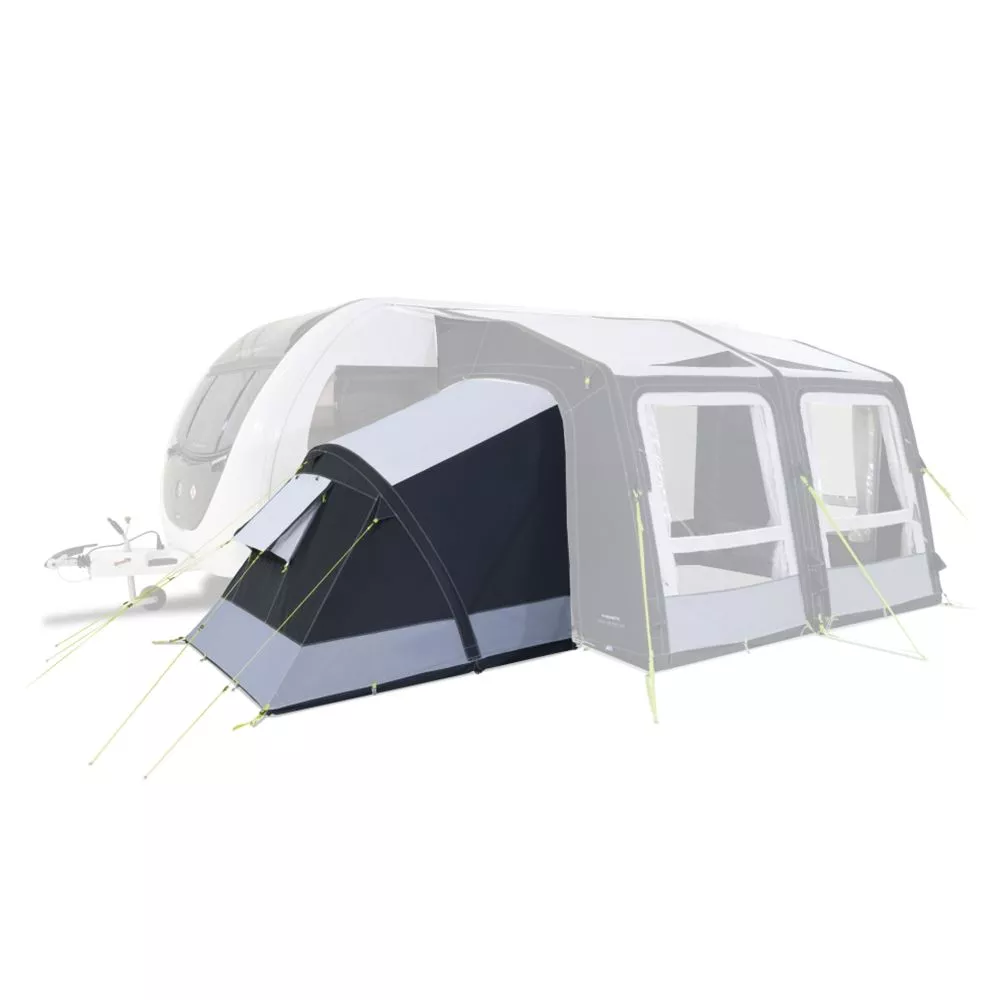 Das Vorzelt kann getrennt bleiben oder du nimmst die seitliche Wand ab, so dass du einen einzigen grossen Wohnbereich erhältst. Die Erweiterung wird gleichzeitig mit dem Rest des Vorzelts über nur ein Ventil aufgeblasen, daher folglich genauso leicht aufzubauen wie das Vorzelt selbst.