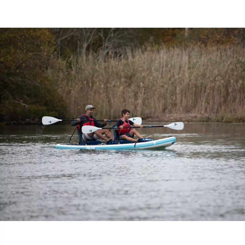 Im umfangreichen Lieferumfang enthalten sind 2 Paddel, 2 Kajaksitze, 2 Fuss-Stützen, eine Hochdruck-Pumpe mit Manometer, Finnen, ein Teleskop-Fuss-Seil, ein Reparatur-Set und ein Rucksack für den mühelosen Transport. Das vollflächige Deckpad ist mit praktischen Gepäckspanngummis auf Bug und Heck ausgestattet. Tahe Beach SUP Range – wo Abenteuer beginnen!