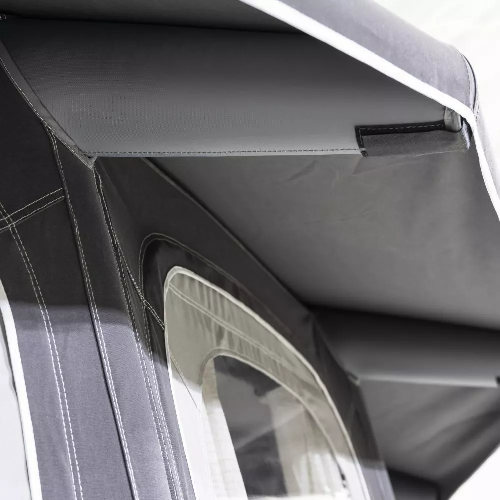 Das Luftvorzelt Ace Air All-Season 400 von Dometic bietet Stil und volle Funktionalität. An heissen Sommertagen kannst du Front- und Seitenelemente per Reissverschluss entfernen. So entsteht ein luftiges Pavillion. Grosse Panoramafenster lassen viel Tageslicht ins Zeltinnere und von drinnen hast du einen hervorragenden Blick nach draussen. Um deine Privatsphäre zu bewahren, kannst du die mitgelieferten Vorhänge schliessen.