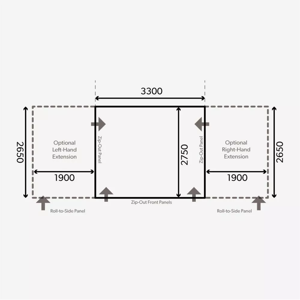Ein optional erhältliches grösseres Front-Vordach mit Reissverschluss vervollständigt die Optik und sorgt an heissen Sommertagen für den ersehnten Schatten. Oder erweitere dein Vorzelt mit einem separaten Vorzeltanbau, egal ob rechts oder links angebaut oder sogar an beiden Seiten, hier sind keine Grenzen gesetzt.