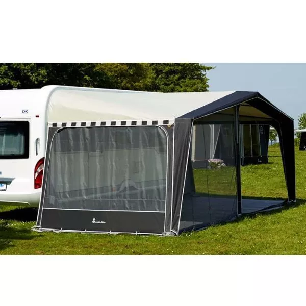 Eine Netzseite zur Montage an der seitlichen Dachstange ermöglicht es, die Seitenwand herauszunehmen und durch eine ganze Moskitonetz-Seitenwand zu ersetzen. Das ist inbesondere ein Vorteil in warmen Regionen, wo eine gute Belüftung des Vorzeltes erforderlich ist.