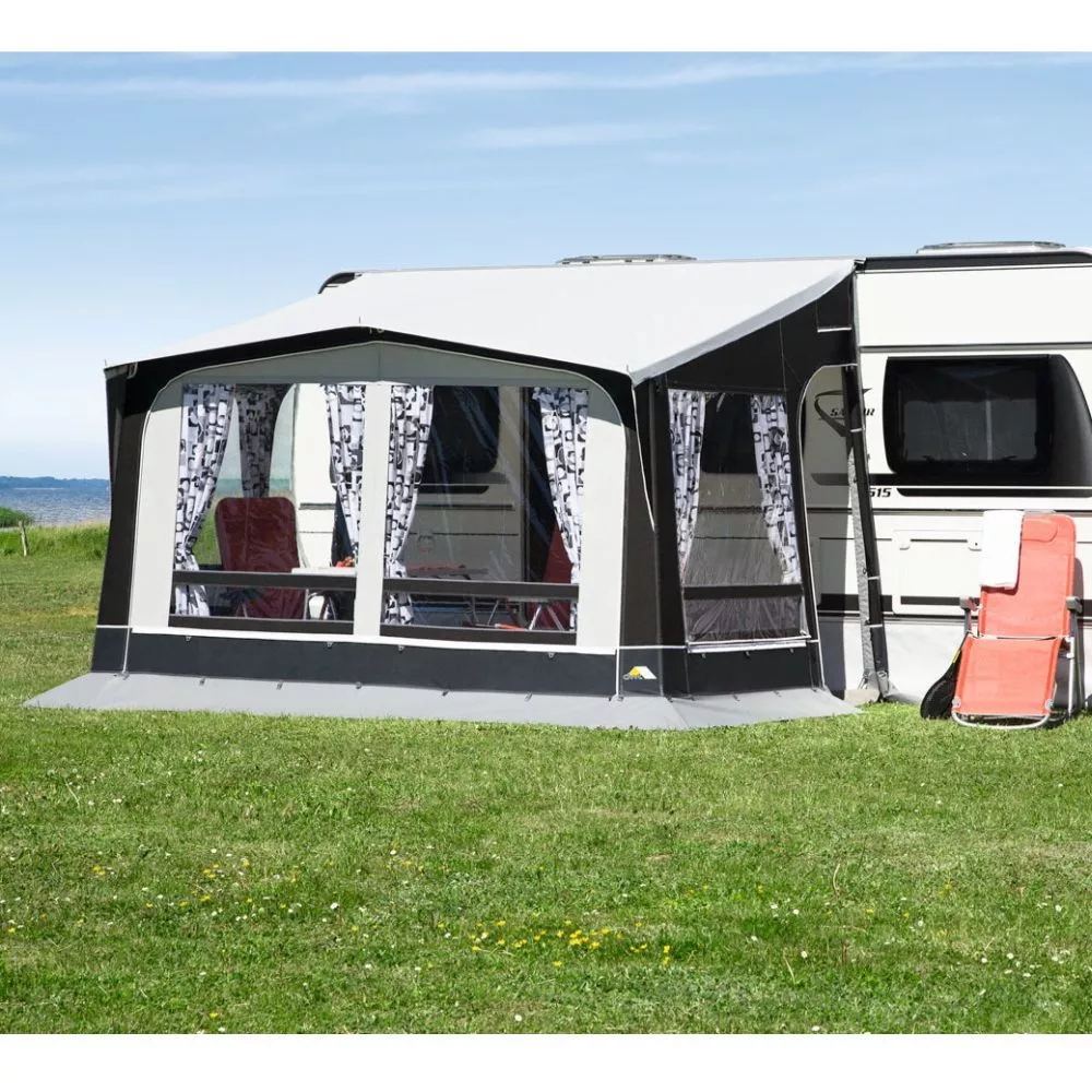 Das Wohnwagen-Teilzelt dwt Jazz besticht mit seiner eleganten Form, seinem modernem Design und seiner Flexibilität. Die Kombination aus robustem Dach und atmungsaktivem Gewebe in den Wänden, kombiniert mit den besonderen Lüftungsfenstern in den Seiten, gewährt einen hohen Komfort, auf den du nie wieder verzichten möchtest.