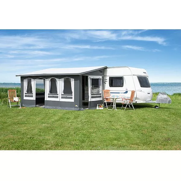 Du möchtest gerne mit dem Reisezelt in den Urlaub fahren und dein festes Vorzelt bleibt am Platz stehen. Mit dem Vorzelt DWT Favorit III ist dies möglich. Du ersparst dir mehrmaliges Auf- und Abbauen und hast für die Reisezeit ein leichtes Zelt oder Sonnendach dabei. Das Vorzelt dwt Favorit III ist ein freistehendes Teilzelt und wird über eine einfache, aber dennoch stabile Verbindung am Wohnwagen befestigt.